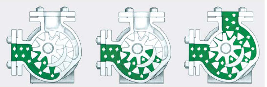 NCB内啮合不锈钢转子泵是内齿轮泵回转式正位移泵,液体流动由两个齿轮产生,主动齿轮和从动轮,内齿轮嵌在外齿轮里面,由一个月牙挡板隔开.当齿轮转动时,液体被吸入到两个齿轮和月牙挡板围成的空间里,当齿轮啮合时, 液体受压被排除泵外. 因此, 液体流动平稳 , 并且容量大, 结构紧凑.